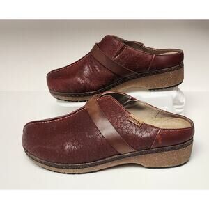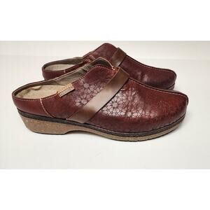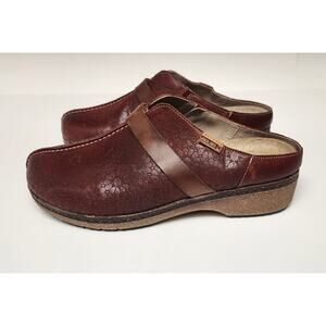 Pikolinos Granada Clog Women Burgundy Leather Slip Comfort Shoes Size 10.