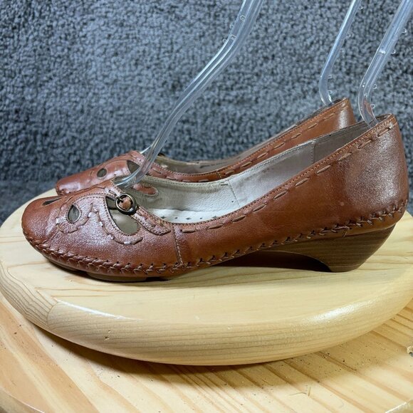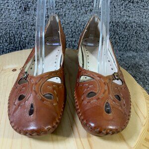 Pikolinos Jerez Loafer Womens Size 9 Brown Leather Wedge Heel Slip On Shoe Spain