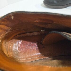 Overall Very good condition with normal wear but there is a tiny knick on the outside of the right boot and some wear on the back of the right heel from driving. See photos for best description. We have priced this to reflect the minor issues noted.