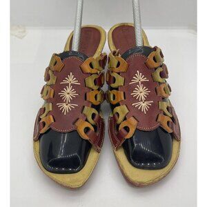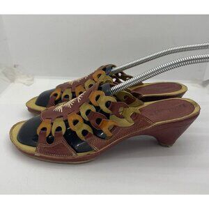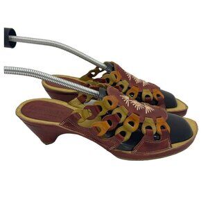 Pikolinos Leather Mule Slide Open Toe Red Cut Out Heel Sandal 38EUR 7.5-8 US