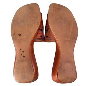 Pikolinos Leather Sandals Caramel Aztec Cutout Low Wedge Slides Size 7/38