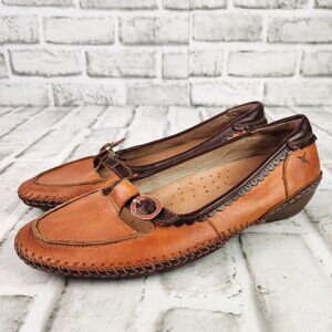 Pikolinos Malaga Women Sz 5.5/6 EU 36 Brown Flats Comfort Buckle Slip On Leather