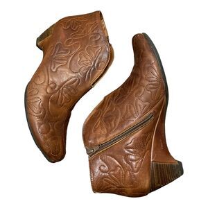 Pikolinos Quilted Leather Cuero Floral Ginebra Zip Wedges Ankle Boots 7.5.