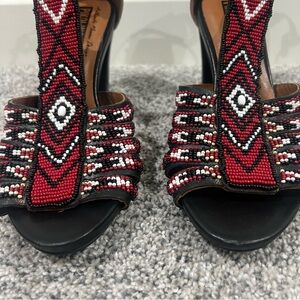 Pikolinos Red Black White Beaded Maasai T-Strap Sandals Women’s Size 37 US 7