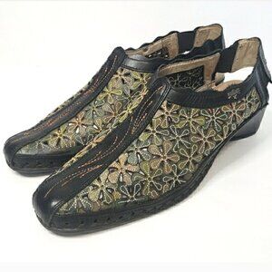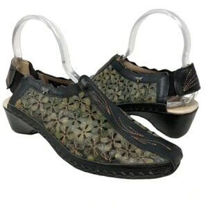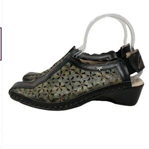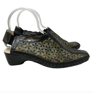 Pikolinos Romana Green Leather Cut Slingback Sandals - Size 8.5 EU 39