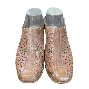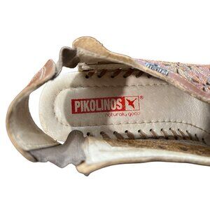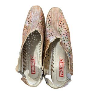 Pikolinos Romana Slingback Leather Floral Sandals Laser-Cut Heeled Size 8