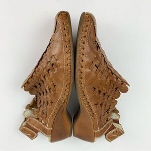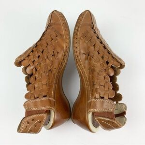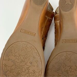 EUC brown leather woven slip on mini kitten heel Romana slingback sandals by Pikolinos in a size EU 38. In excellent used condition. Please see all photos for details.