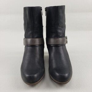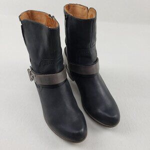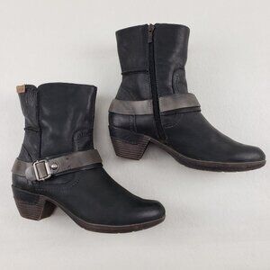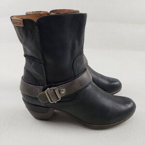 Pikolinos Rotterdam Leather Moto Boot Womens 8.5 39 Black Side Zip Buckle Strap