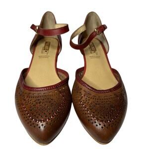 Pikolinos Size Brown Red Leather Elba D'Orsay Pump Heels Vacation