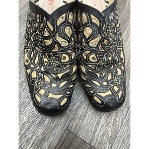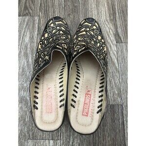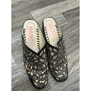 Pikolinos Spanish Design Black & Tan Leather Slip-On Mules Women's Size 37/6.5/7