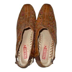 Pikolinos Women 38 Romana Leather Leather Lasercut Low Heel Closed Toe Sandals