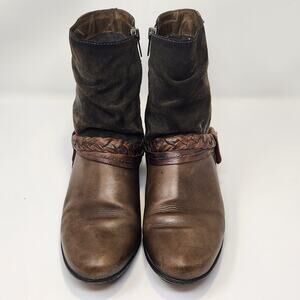 Pikolinos Women Brown Leather Suede Western Moto Ankle Boots Size 39 US 8.5 Zip