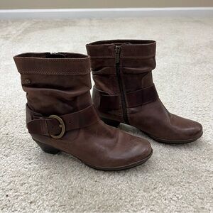 Pikolinos Women’s Brown Leather Ankle Heeled Booties Boots Size 36 US 5.5-6