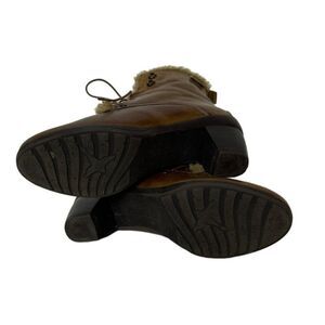 Pikolinos Womens Fur-Lined Leather Ankle Boots Size 37 With Lace-Up & Block Heel