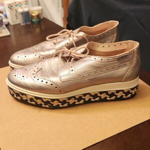 Pikolinos Women's Gold Lace-Up Shoes w/ Woven Rattan Soles Base Size 37 US 7