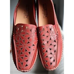 Pikolinos Womens Jerez Red Leather Slip On Driving Loafer Flats Size 37 6.5 / 7