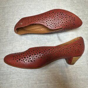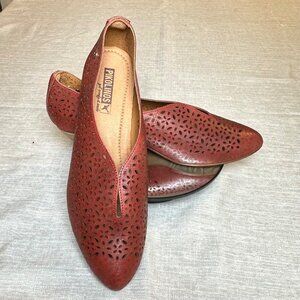 Pikolinos Women’s Red Leather Perforated Low Heel Slip-On Comfort Shoes Size 40