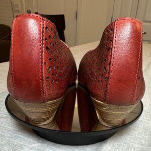 Pikolinos shoes, leather heels, red slip-ons, perforated design, comfortable heels, women's shoes, slip-on heels, red leather shoes, stylish heels, professional footwear, wooden heel shoes, breathable shoes, women's red shoes