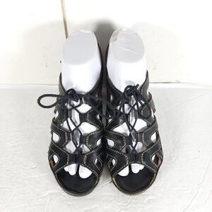 Pikolinos Women's US7-7,5 EU38 Java Black Leather Peep Toe Slingback Sandals .