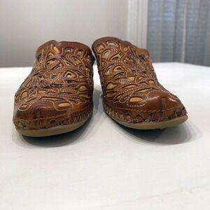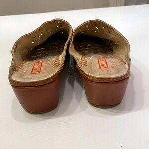 Pikolinos Women's Wedge Mule Slip On Leather Laser Cut Brown Wedges Size 6 / 6.5