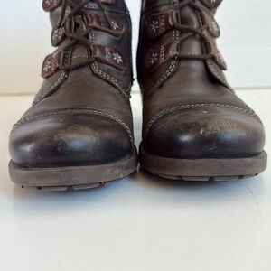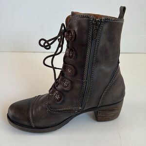 Pikolinos leather lace up side zip heel ankle boot. Grandma core. Brownish gray in color. Comfort shoe. Le Mans. Size 5.5-6.0