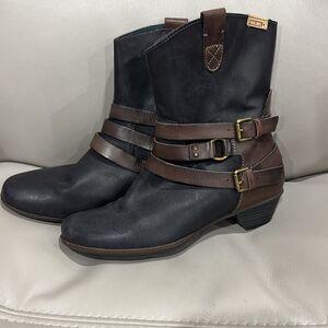 EUC Step out in style with these chic Pikolinos black and brown ankle boots. Perfect for any occasion, these boots offer both comfort and elegance. Size 38/7.5-8