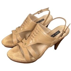 Pilar Abril Tan Leather Braided High Heel Platform Sandals Size 8.5