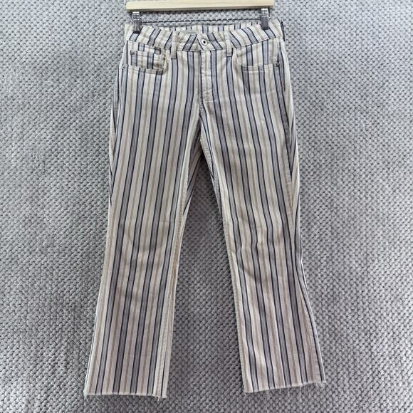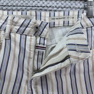 Pilco Pants Womens 28 Cream Brown Blue Striped High Rise Bootcut Raw Hem Casual