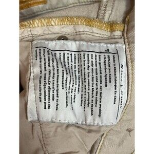Excellent preowned condition, waist measures 15. Low rise, tan color light weight cotton with 1% stretch.