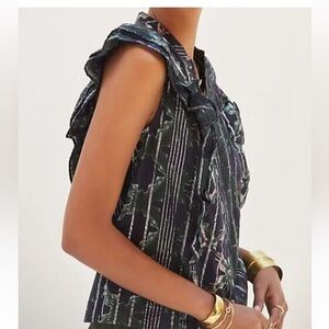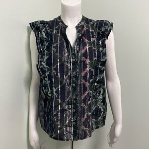 Pilcro Anthropologie Anthro Ruffled Button Front Sleeveless Top Shirt Small S
