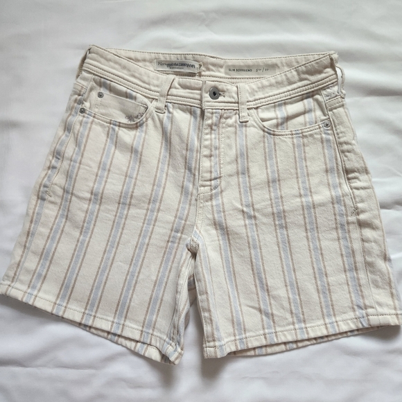 Pilcro Anthropologie Anthro Stripe High Rise Slim Boyfriend Shorts Cream Blue 27