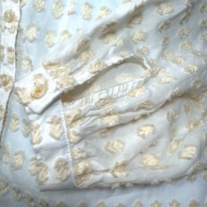 Pilcro Anthropologie Blouse Shirt Cotton Cream Textured Dot Size Small NWT