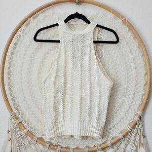 Pilcro Anthropologie Cable Knit Ivory Sleeveless Halter Tank Sweater Vest Size M