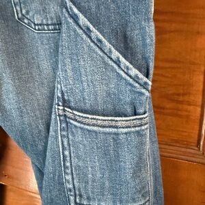 Elevate your denim game with these Pilcro Anthropologie Carpenter Relaxed Jeans. The medium wash straight fit jeans are made of recycled cotton, polyester, and elastane denim material, making them comfortable and durable for everyday wear. The jeans feature a button closure and cargo pockets with a 5-pocket design, perfect for carrying your essentials.