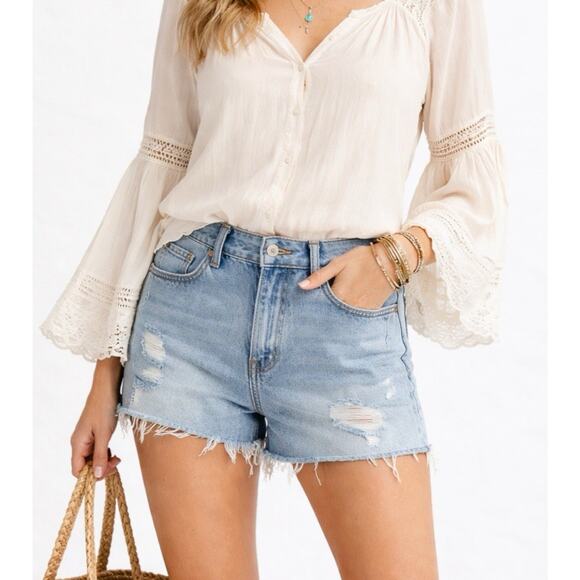 Pilcro Anthropologie Devon Denim Shorts 25 Button Fly Distressed Light Wash