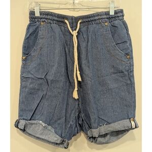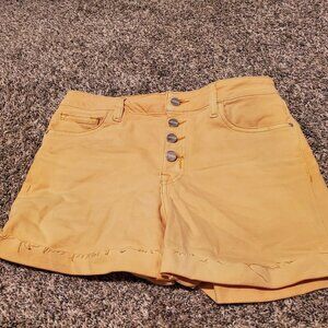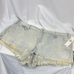 Pilcro Anthropologie Devon Denim Shorts Sz 25 Button Fly Distressed Raw Hem Boho