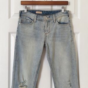 Pilcro Anthropologie Distressed Light Wash Mid Rise Slim Fit Boyfriend Jeans