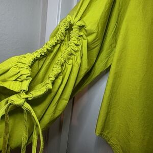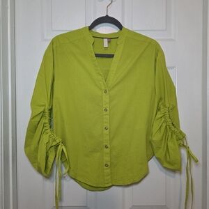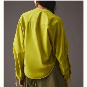 Pilcro Anthropologie Drawstring Chartreuse Poplin Button Blouse Womens XXS