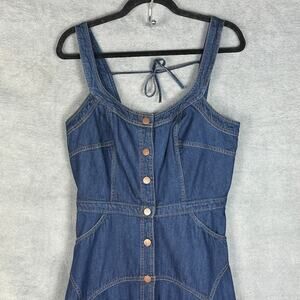 Pilcro Anthropologie Dress Womens Medium Blue Denim Button Midi Sleeveless Boho