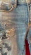 Stylish blue jeans featuring intricate embroidery. Perfect for a chic, casual look.