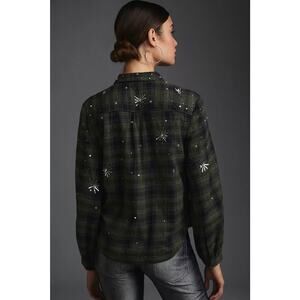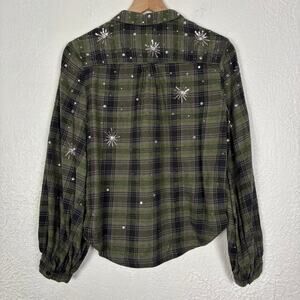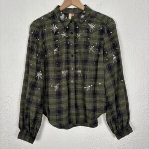 Pilcro Anthropologie Embroidered Plaid Shirt Size Small