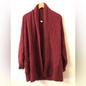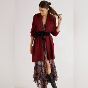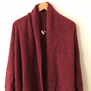 Pilcro Anthropologie Eyelash Cardigan in Wine Burgundy - Size Small