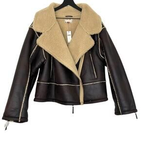 Pilcro Anthropologie Faux Leather Sherpa Jacket Brown 3X