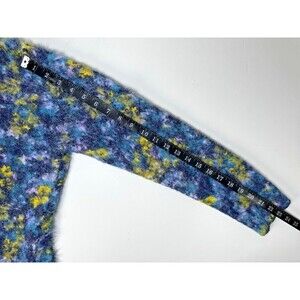 Pilcro Anthropologie Fuzzy Sweater Medium Cropped Floral Blue Abstract Knit