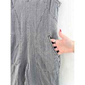 Pilcro Anthropologie Gray Linen Blend Deep V Overall Jumpsuit Small Petite Beach