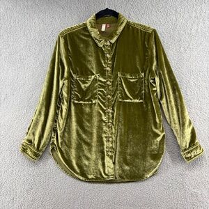 Pilcro Anthropologie Green Velvet Button Down Shirt Women’s Small