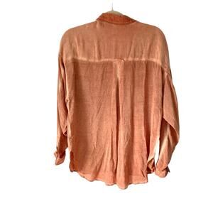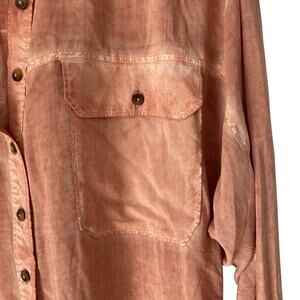 Pilcro Anthropologie Joelle Relaxed Fit Rust Button Down Shirt size small sheer. Measurements laying flat chest 23 inches across and length 27 1/2 inches long front and back 32 inches long