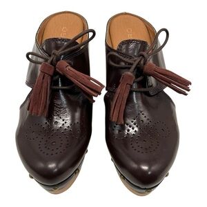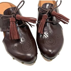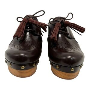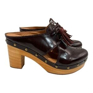 Pilcro Anthropologie Leather Studded Wine Leather Tassel Clogs Women’s 7