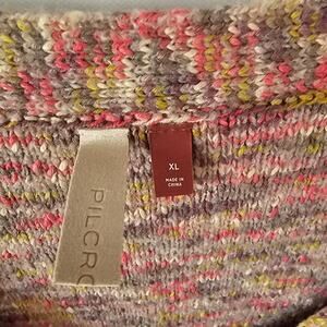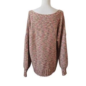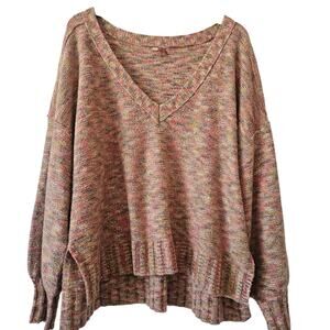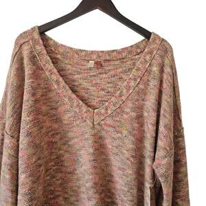Cozy and stylish, this Pilcro by Anthropologie women’s sweater (size XL) is the perfect layering piece for fall and winter. Made in a soft multicolor marled knit with shades of pink, tan, and olive, it features a slouchy oversized fit, V-neckline, dropped shoulders, and ribbed trim.