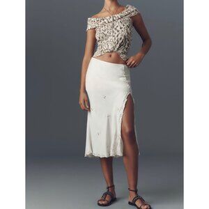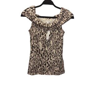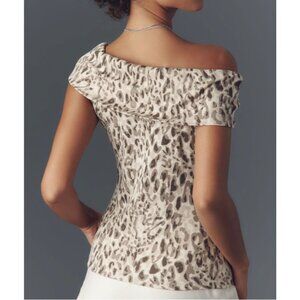 Pilcro Anthropologie Off-The-Shoulder Twist Rib Top Animal Print Size M Brown